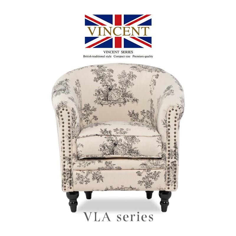 VINCENT ヴィンセントシリーズ ラウンジソファ 1人掛けソファ シングルソファー 1人用 コンパクト 英国アンティーク調 レトロ クラシカル おしゃれ かっこいい 店舗什器 応接室 レストラン カフェ ラウンジ ホテル サロン 木製 輸入家具 布地 トワレ ベージュ系 VLA1F84K