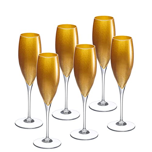 【中古】【未使用・未開封品】Barski ガラストースティングフルート シャンパン フルート クリスタルグラス 6個セット ウェディングトースティングフルート ゴールド装飾 11オ