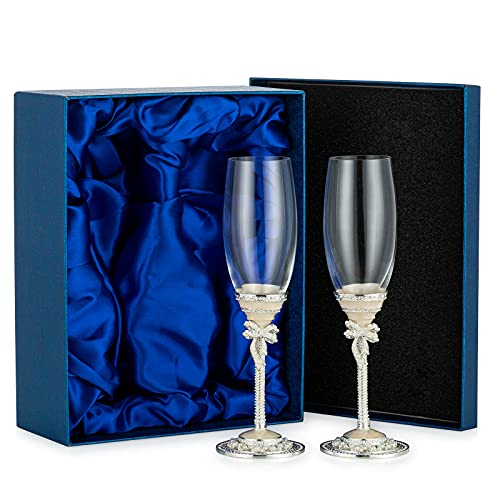【中古】【未使用・未開封品】Barski ガラストースティングフルート シャンパン フルート クリスタルグラス 6個セット ウェディングトースティングフルート シルバー装飾 11オ