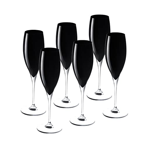 【中古】【未使用・未開封品】Barski トースティングフルートグラス シャンパンフルート クリスタルグラス 6個セット ウェディングトースティングフルート ブラック 11オンス