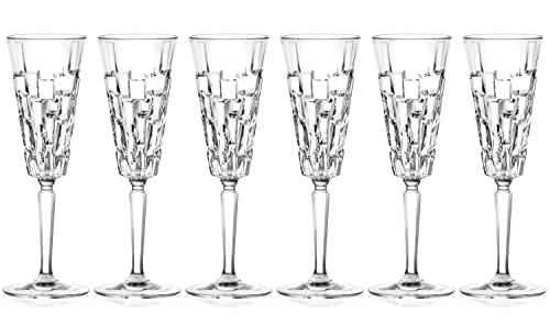 【中古】【未使用・未開封品】Barski トーストフルートグラス シャンパン フルート クリスタルグラス 6個セット ウェディング トースティング フルート デザイン 7オンス ヨー