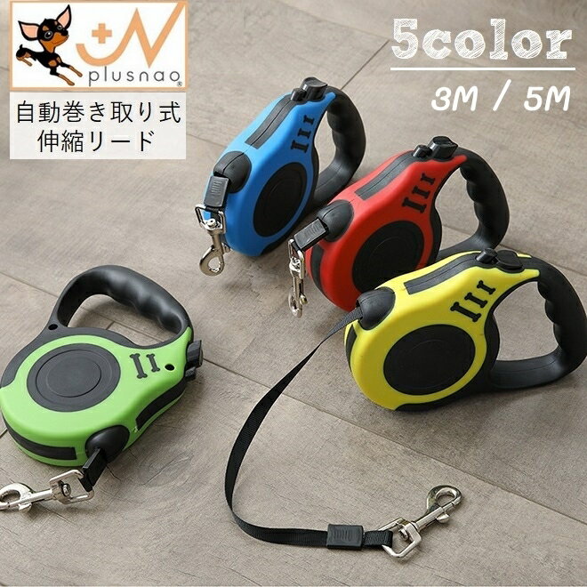送料無料 伸縮リード 巻き取り式 3m 5m 犬用 小型犬 中型犬 猫 ドッグリード ペット用品 散歩紐 リード ワンタッチ 簡単操作 自動巻き取り式 自動伸縮 おさんぽ 牽引紐 リーシュ ナスカン 持ち手付き ツートンカラー おしゃれ かわいい 便利 シンプル 緑 黄 青 赤 ピンク