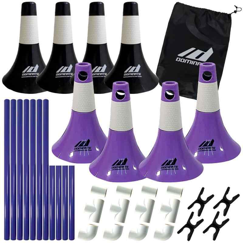 リップコーン1と2のミックス 正規品 海外やプロも使用 バッグ付き DOMINATEリップコーン1(黒色4個)x DOMINATEリップコーン2混合セット(紫色4個)含まれている物:DOMINATEリップコーン1(黒色4個)と「 DOMINATE リップコーン2(紫色)x 4個、長い棒(紫色)x7個、短い棒(紫色)x4個、3種類の固定型コネクター(白色)x各種類4セット(合計12個)、黒の首が回るタイプのコネクター x 4個、黒色バッグ(収納バッグ) x 1個」を混ぜたセットになっております。リップコーン2の頭には縦と横に棒が差し込めるようになっていて、棒の長さも2種類あるため身長や手の長さ等に合わせたトレーニングが可能です。DOMINATE全商品、異なる個数のセットはこちらのリンクから全部閲覧できます( shorturl.at/sAC35 )含まれている物すべてが収納バッグに収まり、持ち運び便利な設計になっております。棒の自由な箇所に取り付け可能な変動式の黒のコネクターと固定型の3種類のコネクターが含まれております。実物と写真で色味や見え方が多少違うことがございます。DOMINATE主要取引先:Bリーグ所属チーム、大学一部、学校法人(ウインターカップ、インターハイ、全国各地優勝経験のあるチームを含む)、一般企業、実業団、国内外のスキルトレーナー(NBAスキルトレーナーを含む)、海外クラブチーム、海外学校法人等。(インスタグラム:official.dominate)