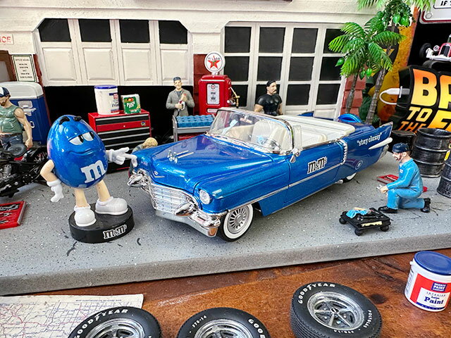 ダイキャスト 1/24 箱入り ミニカー フィギュア付きm&m's BLUE&1956 CADILLAC ELDORADO DIE-CAST FIGUREJADATOYS キャデラック エルドラド ブルー 青 メタリックエムアンドエムズ チョコレート ローライダー ビンテージ 車 アメ車インテリア ガレージ ジャダ