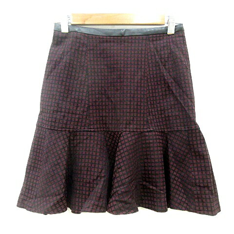 【中古】ドリッテ DRitte Boutique フレアスカート ミニ チェック フェイクレザー 36 S 赤茶 ブラウン /MN レディース 【ベクトル 古着】 250402