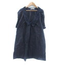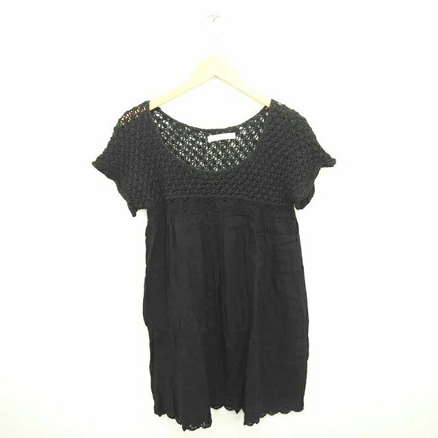 【中古】ドリッテ DRitte ワンピース ひざ丈 切替 ニット 透け編み 薄手 ウール 麻 リネン混 半袖 F 黒 ブラック /TT13 レディース 【ベクトル 古着】 210611