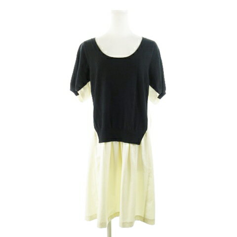 【中古】ドリッテ DRitte Boutique Dress Museum ワンピース ミニ 半袖 異素材 ニット 切替 フェイクレイヤード とろみ感 バイカラー F 黒 ブラック /AH10 レディース 【ベクトル 古着】 250304