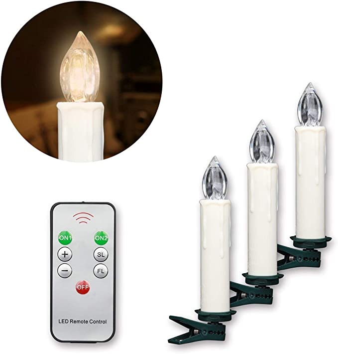 30個 クリスマスツリー LED テーパーキャンドル リモート取り外し可能クリップ キャンドルライト ドリッピング効果 多機能 電子制御 LED キャンドルライト