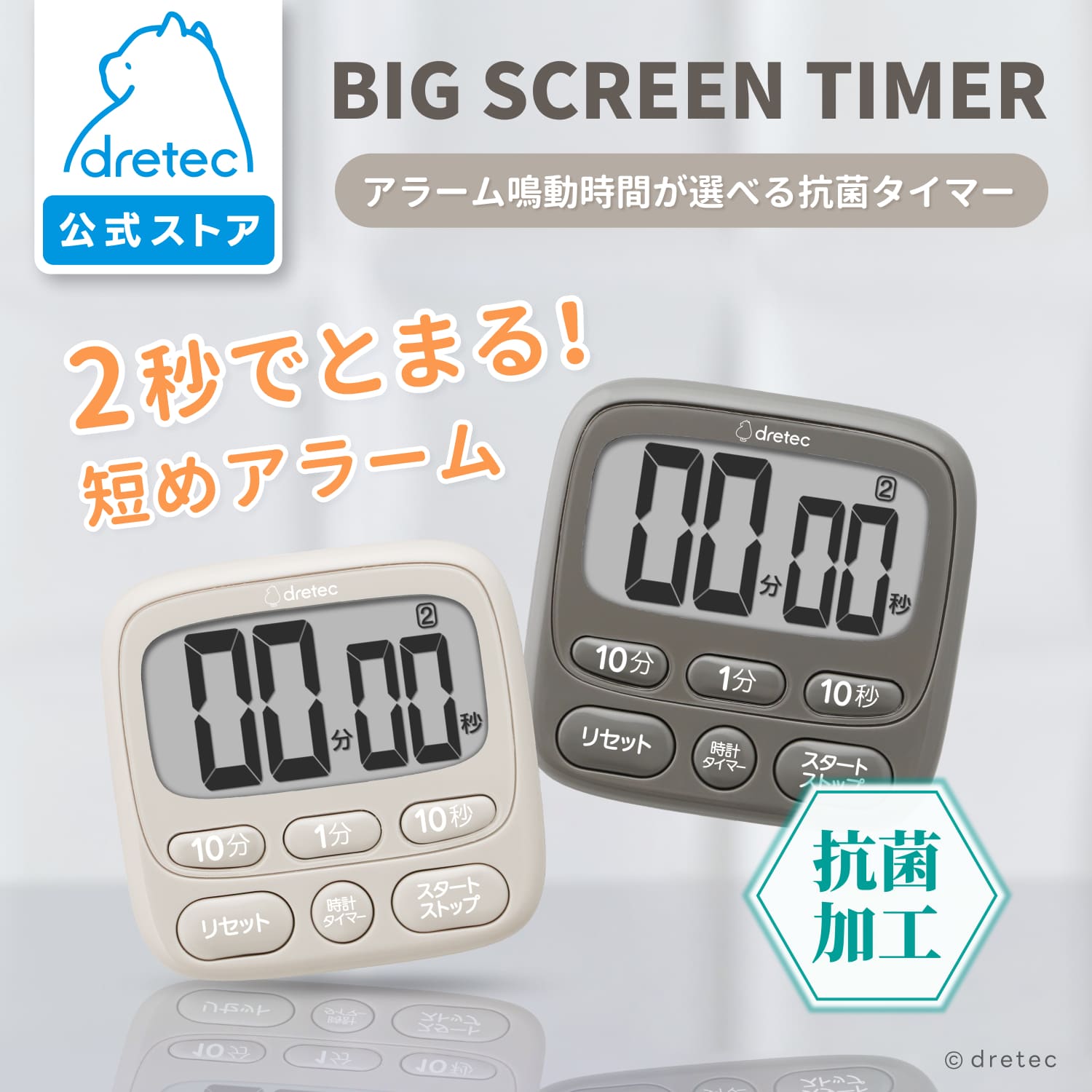 【公式】dretec ドリテック タイマー デジタル 抗菌 学習 キッチンタイマー 料理 勉強トレーニング 時計 置き時計 カウントアップ カウントダウン リピート アラーム 時間選択 2秒 磁石 スタンド 通し穴 衛生的 デジタル時計 多機能 シンプル ベージュ ダークグレー T-612