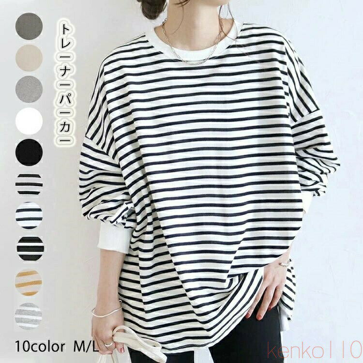 トレーナー パーカー レディース スウェット トップス 綿 コットン 大きいサイズ メンズライク 無地 ボーダー ドルマンスリーブ ビッグサイズ カジュアル ビッグ ドロップショルダー ビッグシルエット ストリート ゆったり 長袖 大きめ 春 秋