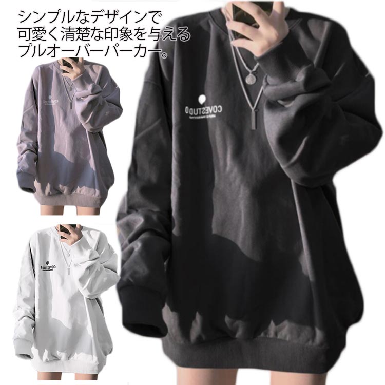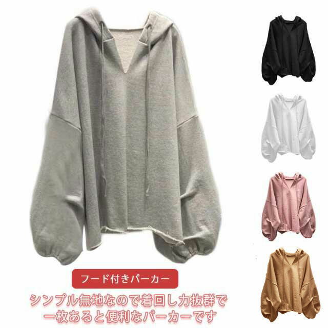 プルオーバー ビッグシルエット 秋服 パーカー フード付き トップス レディース 薄手 長袖 おしゃれ tシャツ カジュアル ゆったり 通勤 通学 春 秋 体型カバー シンプル かわいい