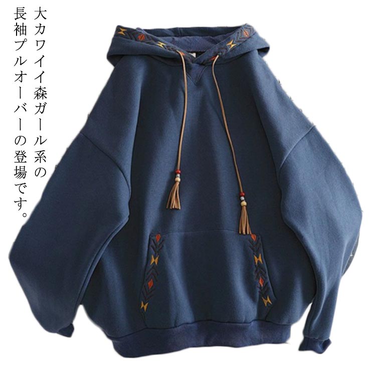 暖かい 冬 ロングスリーブ ス ゆったり プルオーバーパーカー フード付き 春 秋 裏起毛 ドロップスリーブ オーバーサイズ レディース 刺繍パーカー オーバーサイズ パーカー