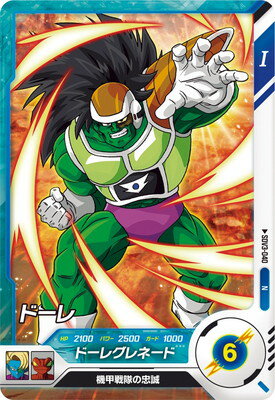 HG8-31 ドーレ 1600 1800 1500 ドーレグレネード 5 クウラ様への忠誠心 バトル開始時、自分チームに「クウラ」か「メタルクウラ」がいると、パワーとガードが2倍になる。 エナジー消滅ユニット 自分チームと敵チームのヒーローエナジーを0にする。 2