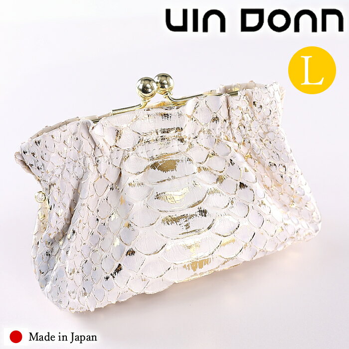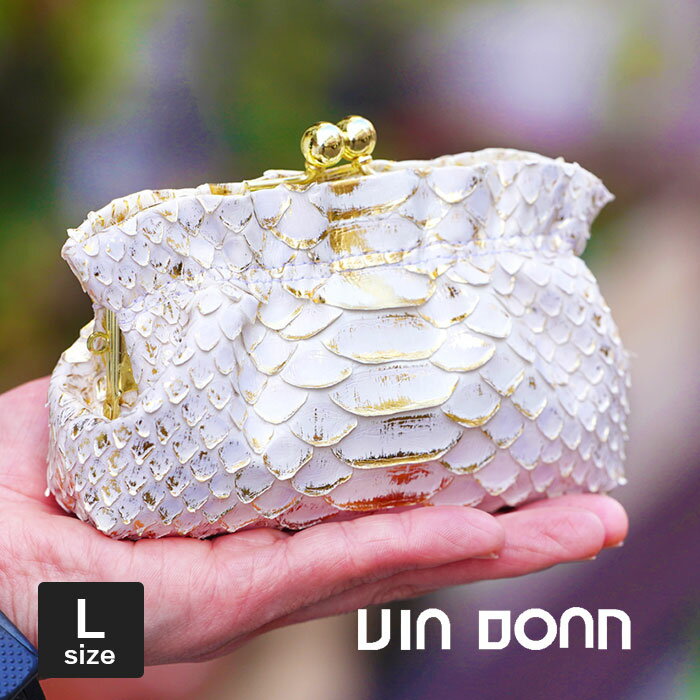 VIA DOAN ヴィア ドアンは1971年創業以来、女性のライフスタイルに寄り添うバッグを作り続けてきました。 良質な素材を国内外から厳選し、最大限にひきだしながらデザインや試作を重ねて日本の職人の手で丁寧につくられるバッグ。 使うたびにずっといつまでもと思えるような生活に欠かせないものづくりを目指しています。 ホワイトカラーのパイソンにゴールドの箔加工を施した迫力ある蛇革シリーズ。 コンパクトなのに大容量で、カード、小銭、お札が出し入れし易いL字型のスマートなお財布です。 外側に小銭入れとして使えるファスナーポケットが付いている人気の形になります。 メインの財布としてご使用いただけます。 ・ファスナー開閉式 ・背面にファスナーポケット ・カードポケット×20、オープンポケット×2、オープン小銭入れ サイズ:幅20×高さ10×マチ1.5cm 素材 :ヘビ革、牛革、ポリエステル ★日本製