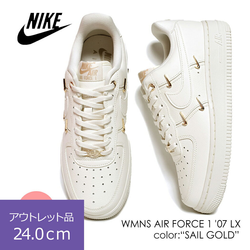 【訳アリ★アウトレット品】 ≪ 左24.0cm 右23.5cm / 左右サイズ違い ≫ NIKE WMNS AIR FORCE 1 '07 LX "SAIL GOLD" ナイキ ウィメンズ エアフォース スニーカー ( 白 ホワイト 金 ゴールド バッチ レディース FV3654-111 )