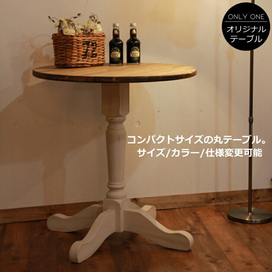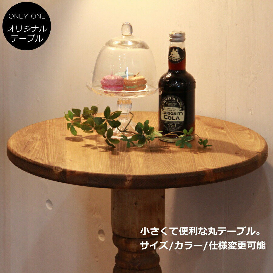 テーブル 幅45 ラウンドテーブル 机 食卓 手作り 木 木製 北欧 無垢 パイン材 カントリー 家具 ナチュラル おしゃれ かわいい インテリア エレガンス ネコ脚 ナイトテーブル オーダー カントリー家具 日本製 45cm 450
