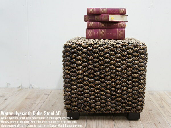 ウォーターヒヤシンス キューブスツール 40DB アジアン家具 アジアンリゾートチェア 四角い椅子 腰掛 木製いす 天然木イス モダンアジアン 完成品 バリ家具 送料無料 ハンドメイド 手造り WHCubeSool40 背もたれなし 業販 卸 スーパーセール