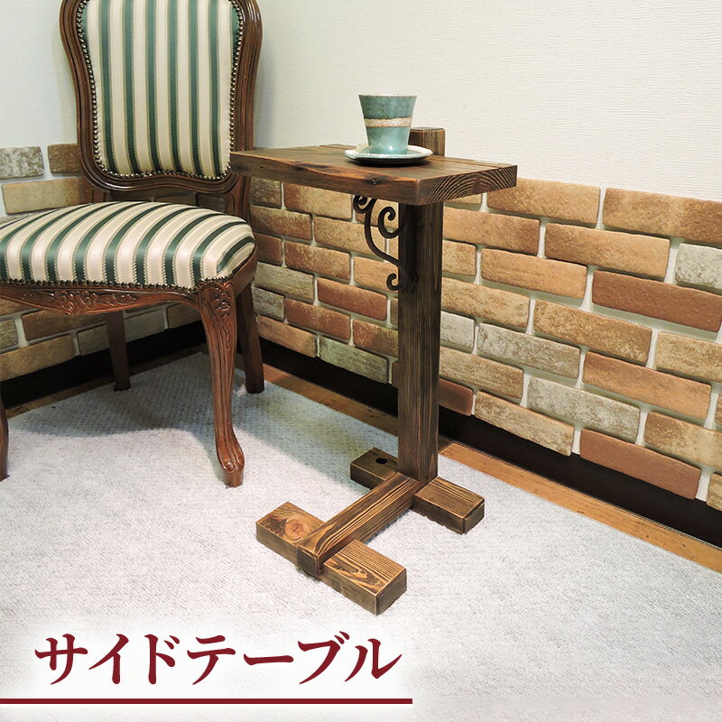 【ふるさと納税】サイドテーブル 木製 アンティーク おしゃれ 完成品 幅35cm 高さ65cm ヴィンテージ家具 アイアン コの字 無垢 古材 木 昭和レトロ 家具 インダストリアル 古民家 和モダン インテリア 手作り 長野市