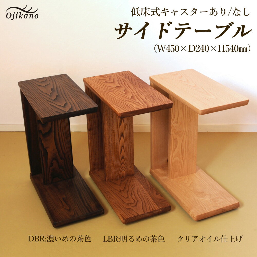 【ふるさと納税】サイドテーブル 【低床式キャスターあり・なし】【クリア・ダークブラウン・ライトブラウン】高さ540mm(54cm)【国産クリ使用】木製 手作り 机 収納 インテリア シンプル ナチュラル リビング 寝室 ベッドサイド 【大鹿野工房】