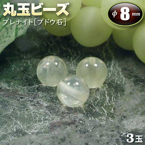 【バラ売り】プレナイト[ブドウ石]・丸玉ビーズ◆8mm玉◆〈3玉入〉・パワーストーン・天然石・お守り・ハンドメイド・手作り・パーツ・☆真実を見抜く閃きの石☆
