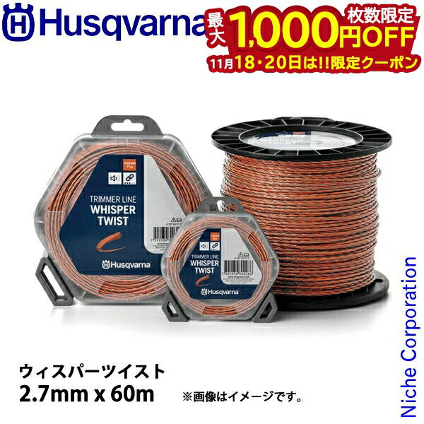 【18・20日は!枚数限定 最大1,000円OFFクーポン】ハスクバーナ ナイロンコード ウィスパーツイスト2.7mmx60m 597669131 草刈機 刈払機 刈払い機 ナイロンカッタ ナイロンカッター ナイロンコード