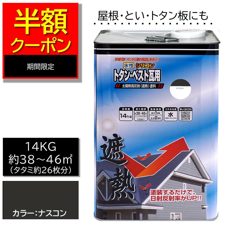 【半額クーポン配布中】屋根ペンキ 瓦【ペンキ 塗料 DIY ニッペ 水性シリコントタン・ベスト瓦用遮熱塗料 ナスコン14kg ニッペホームオンライン | トタン・瓦 屋根 遮熱 水性塗料屋根用