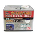 特長高耐久アクリルシリコン樹脂(酸性雨・塩害・紫外線・排気ガスなどに強い塗膜を形成)と強力防サビ剤の効果により最高クラスの高い防サビ性と高い耐久性を実現したサビの上から直接塗れる高性能トタン用塗料。強力防サビ剤が防錆効果を発揮し、サビ止めと上塗りが同時にできます。紫外線劣化防止剤「HALS」を配合。サビ取り不要で作業時間を短縮できます。たれにくく塗りやすい速乾型塗料なので作業性が抜群です。用途トタン屋根・カラートタン・下見板・ひさし・トタンベイ・トタン外壁建材・合板など鉄部・木部(床は除く)にも塗れる乾燥時間20℃:約1.5時間(塗り重ねる時は5時間以上)冬期:約4時間(塗り重ねる時は8時間以上)仕様塗り面積(1回塗り):47〜64平方メートルタタミの広さで:約34枚分色:10色塗れるものトタン屋根・下見板・ひさし・トタンベイ・トタン外壁・カラートタン・建材・合板など鉄部・木部(床は除く)塗れないものガルバリウム鋼板、塩ビ鋼板、フッ素鋼板、銅板、ステンレス板、アルミ板、樹脂板、油・灯油などの掛かる所、常に水に浸かる所うすめ液・用具の手入れ塗料の粘度が高く、塗りにくい時に5%以内のペイントうすめ液でうすめてください。※うすめ過ぎは塗装不良の原因となりますのでご注意ください。使い終えた刷毛や用具などもペイントうすめ液で洗ってください。塗装方法(トタン屋根の場合) ※作業中は必ず手袋を着用のこと。1.下地調整はがれかけている古い塗膜やボロボロ取れるようなサビ・厚みのあるサビは皮スキ、ワイヤーブラシ、サンドペーパーでよく落とします。油汚れはペイントうすめ液を含ませた布(ウエス)で拭き、ゴミ・泥などの汚れや、拭くと白い粉が付く塗膜はデッキブラシなどで水洗し、充分に乾燥させます。洗浄は高圧洗浄機を使うと効率的です。2.マスキング塗らない部分や境目は、養生テープ、マスキングテープ、ポリマスカーでカバーします。高い所を塗るときは塗料が飛び散ることがあるので、事前に周辺にある車などを移動しておきます。3.かくはん開缶前に缶を逆さにして揺すり、マイナスドライバーや缶オープナーで開け、底の隅々まで充分にかき混ぜます。塗料の粘度が高く、塗りにくい時は、ペイントうすめ液で少しうすめます。(5%以内)4.刷毛塗装刷毛で隅や瓦棒など塗りにくい所から先に塗ります。軒先なども忘れずに塗りましょう。塗装順序は上から下へ、最後にははしごにたどり着くように逃げ道をつくりながら塗ります。(高所落下注意)5.ローラー塗装広い面は、瓦棒の間を1スパンとして、ローラーまたは毛幅の広い専用刷毛で塗り広げます。一度に厚塗りせず7回塗りで仕上げます。危険な所や足場が悪い所などは、ローラーにつぎ柄をつけて使えば安全に塗装できます。検索ワード:DIY 防錆 紫外線 塩害 雪 排気ガス 光沢 劣化