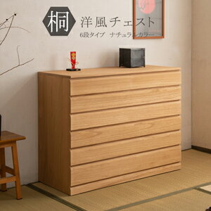 桐洋風チェスト 6段 ナチュラル色 HI-0106【送料無料】日本製 桐タンス 引き出し収納 桐たんす 着物収納 隙間収納箪笥 引き出しタンス