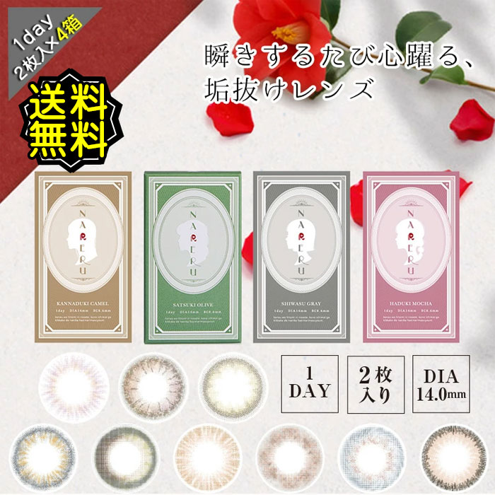 【選べる2枚入セット】カラコン ワンデー 度あり NARERU ナレル 1箱2枚入り×4箱 8枚 直径14.0mm BC8.6 低含水 UVカット ブラウン グレー ブルー オリーブグリーン 小さめ 当日出荷