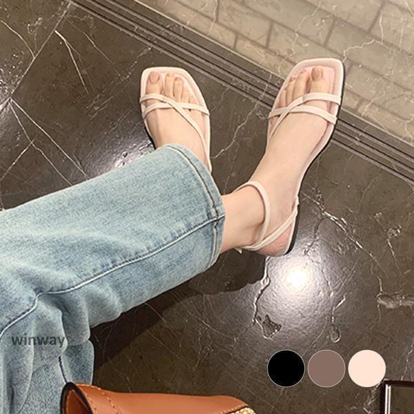サンダル シューズ レディース フラット ぺたんこ 靴 フラットサンダル おしゃれ トレンド 春 夏 カジュアル / ナロークロスストラップフラットサンダル