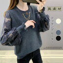 レース カットソー プルオーバー ニットカットソー レディース トップス 長袖tシャツ 切替 レイヤード風 きれいめ レース袖 透け感 インナー 秋冬 春夏 ベーシック 女 通勤 大人可愛い