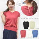 ニット レディース 秋 半袖 きれいめ 夏 Vネック フレンチスリーブ ニットソー バックリボン トップス ノースリーブ サラサラ ゆったり ニットカットソー シンプル オフィスカジュアル 無地 V首 春 テラコッタ 福袋対象