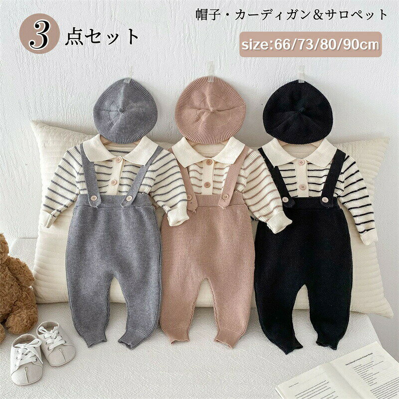 ベビー服 セットアップ ニットカーディガン サロペット セーター ニット 男の子 女の子 ベレー帽 ベビー パンツ オーバーオール 3点セット 可愛い 上下セット 新生児 赤ちゃん