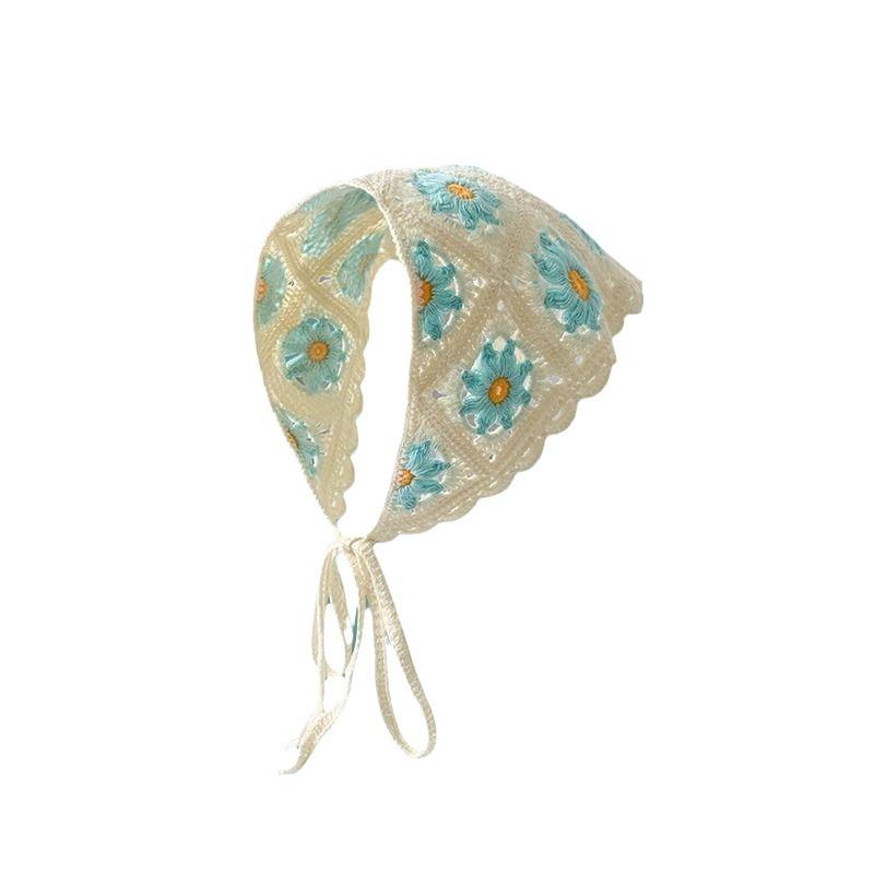 2個セットバンダナ レディース 春夏 ニット バンダナキャップ 三角巾 日焼け対策 紫外線対策 ブルーグリーン系・性別: 女性・素材: ニット・柄: 格子柄・スタイル: 韓国・流行要素: 動物.柄.リボン.蝶・カラー: 針織蝶三角巾 青緑.針織五弁花三角巾 カラー