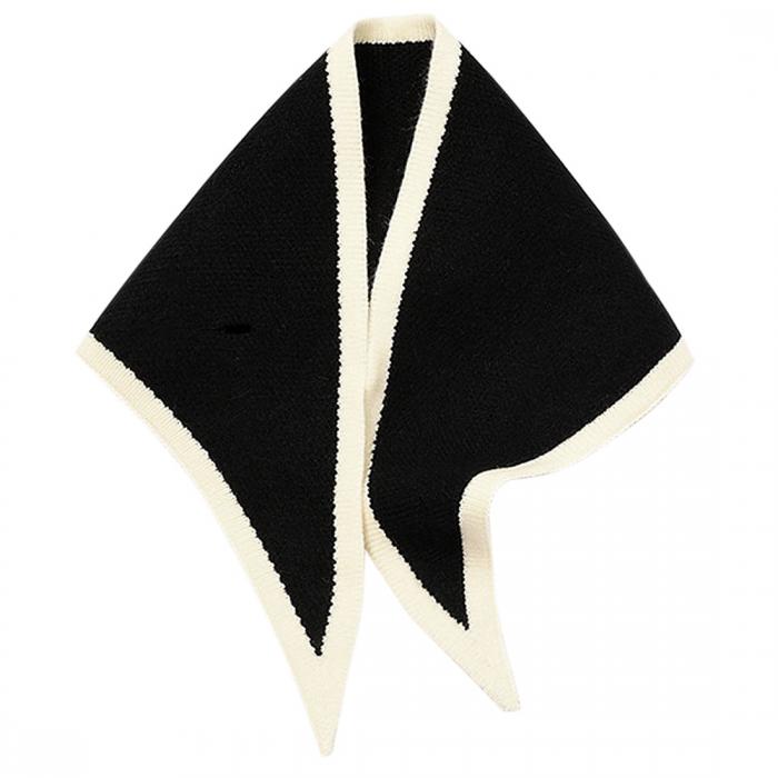 Allegra K ネッカチーフ スカーフ 三角形 小さめ ニット バンダナ 髪飾り リボン レディース ブラック 84x28cm