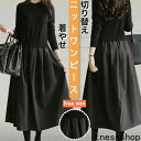 黒ワンピース フォーマル 黒 ワンピース ドレス 黒 膝丈 法事 シンプル ニットワンピース ロング 秋冬 きれいめ 大きいサイズ 切り替え 異素材 秋服 秋 冬 長袖 40代 カジュアル レディース