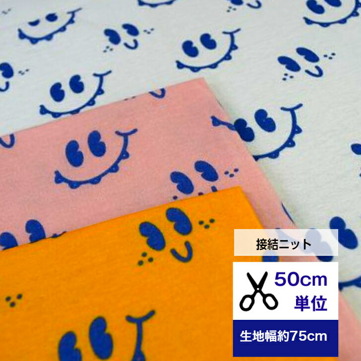 【50cm単位】接結ニット 「スマイリーデイズ」 コットン100% 生地 スマイル柄 face ニコニコ 顔 綿 服 デジタルプリント ハンドメイド ベビー ベビー服 介護用品 ワンコ服 子供服 新作11
