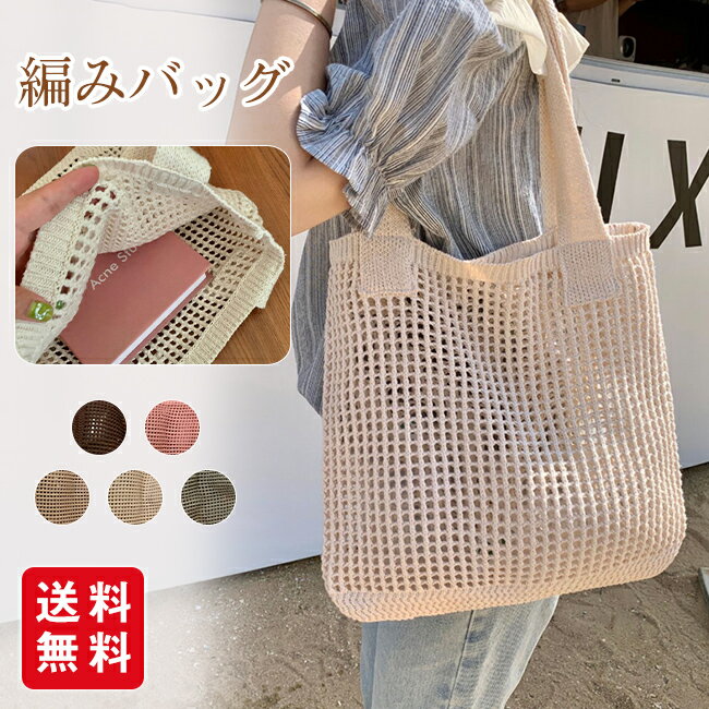 ニットバッグ トートバッグ 編み メッシュ レディース サマーバッグ 手さげ 肩掛け 鞄 カバン 春 夏 大容量 軽量