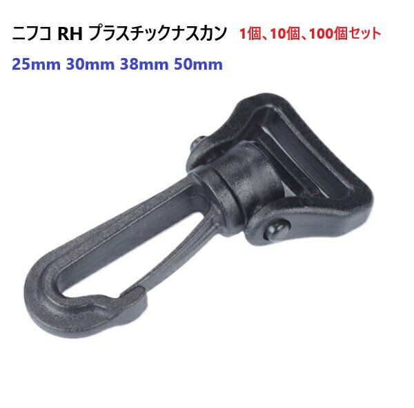 nifco 1個 10個 100個 セット 25mm 30mm 38mm 50mm クロ 回転機能付き RH25 RH30 RH38 RH50 プラスチックナスカン フック ニフコ MBS