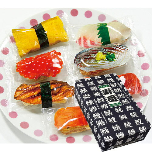 メーカー名 ニューエスト 内容量 13コ 賞味期限 製造から180日 箱サイズ 120×200×50mm 包装加工 ロイヤル ※寿司のネタ柄は選べません。わさび醤油味、煮きり醤油甘だれ味です。※醤油だれがしみこんで若干しっとりとした食感です。※包装紙に漢字の読み方クイズがあります。答えは箱の裏面にあります。