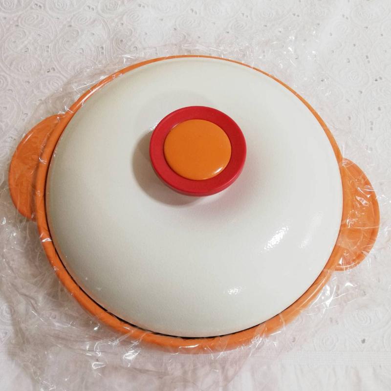 ニュークックアートプラス 電子レンジ専用調理器(レシピ本付)材質:[本体:シンジオタクチックポリスチレン、アルミニウム、セラミック、アルミナ繊維、シリコン] [フタ:アルミニウム、シンジオタクチックポリスチレン]本体サイズ:(約)幅25.5×奥行23×高さ13cm 重さ:(約)1.12kg簡単 マーブルコート 余分な油カラー:オレンジ 生産国:韓国 容量:(約)1.8リットルセット内容:本体×1、フタ×1、レシピ集×1(取扱説明書・製品書)
