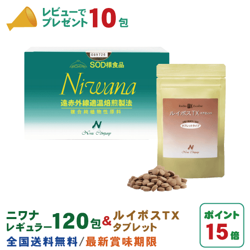丹羽SOD ニワナ Niwana レギュラー 120包 1箱 & ルイボスTXタブレット 150粒 1箱 セット 丹羽SOD様食品正規品の専門店