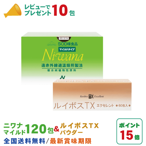 丹羽SOD ニワナ Niwana マイルド 120包 1箱 & ルイボスTXパウダー 60包 1箱 セット 丹羽SOD様食品正規品の専門店