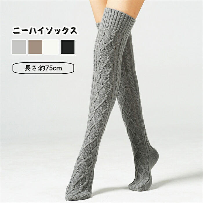 【Fashion THE SALE15%OFF】オーバーニーハイソックス 75cm 秋 冬 レディース 1足 ニット 美脚 シンプル ブラック 靴下 抗菌防臭 ソックス 吸湿 着圧 弾性 女性 ファー 白 長さ ホワイト 女子高生 靴下 スクール 制服 暖かい