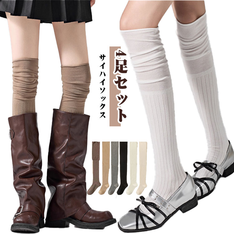 ハイソックス 4足セット サイハイソックス ルーズソックス ニーハイソックス オーバーニー 4足セット ロング 靴下 ロングソックス リブ 切り替え ロング 通勤 くつ下 通学 締め付けない おしゃれ 学生 春 秋