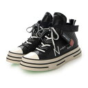ヌーベル ヴォーグ リラックス Noubel Voug Relax 厚底 ジップアップ ラベル スニーカー (ブラック)