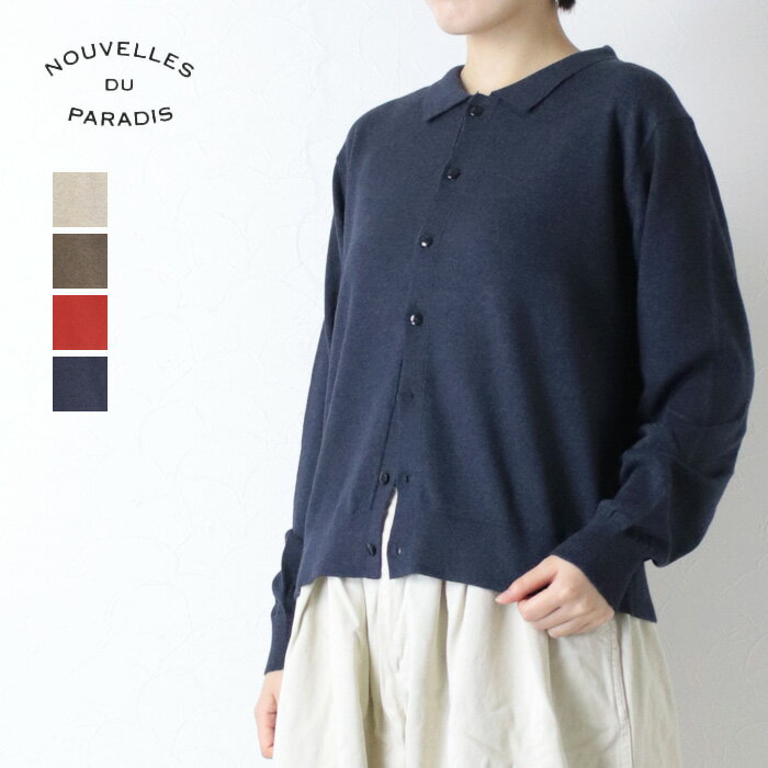 ヌーヴェル ドゥ パラディ Nouvelles du paradis ムーコットンポロカーディガン PK24301/PK25301 長袖 ポロ 襟 レディース 2025秋冬