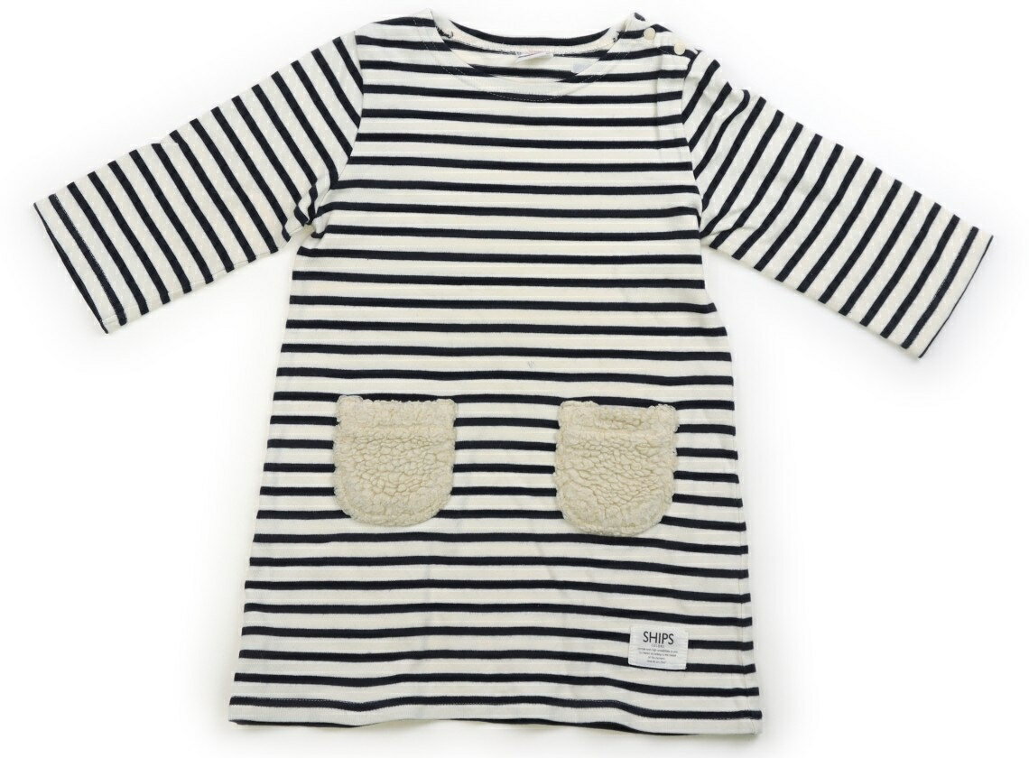 シップス SHIPS ワンピース 100 女の子 ネイビー・オフホワイト・ボーダー 子供服 ベビー服 キッズ アウトレット ユーズド 【中古】キッズ・ベビー・マタニティ