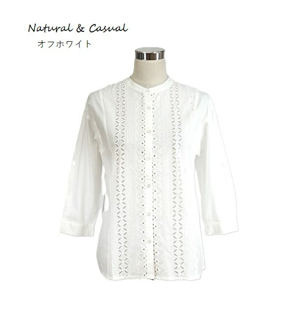 ■詳細■ 大人ナチュラルな綿100%素材 レースの柄が目を引く「上品なブラウス」 後身頃のギャザーにより ゆったりとしたシルエットで体型を拾いにくいのも魅力 首回りをすっきりと見せるバンドカラー。 デイリー使いはもちろん、 オフィスにも着回しの利くデザイン。 ボタンを開けてカーディガンのように羽織っても◎ □洗濯機OK(ネット使用) ※大手通販商品のアウトレット(廃番)商品です。 初期不良以外のご返品はお受け致しかねますので ご了承の上お買い求め下さいませ。 ■カラー■ ・オフホワイト ・ネイビー *ご注意ください* お使いの環境により、画面上と実物では 多少色具合が異なって見える場合がございます。 ■サイズ■ (平置き採寸) M:身幅52/肩幅51/着丈63/袖丈40 ※裁断・縫製により多少誤差が生じます。 ご了承下さい。 ■組成■ 品質/綿100%