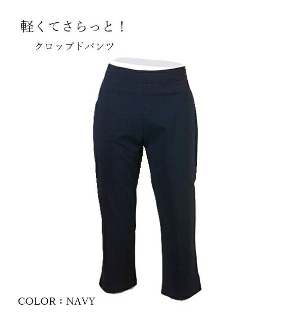 在庫限り 美脚 軽くてさらっと!クロップドパンツ 選べる股下53/58cm ストレッチ(L~4L)ネイビー・オフホワイト 2色